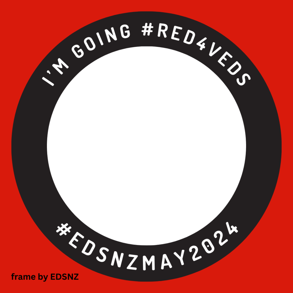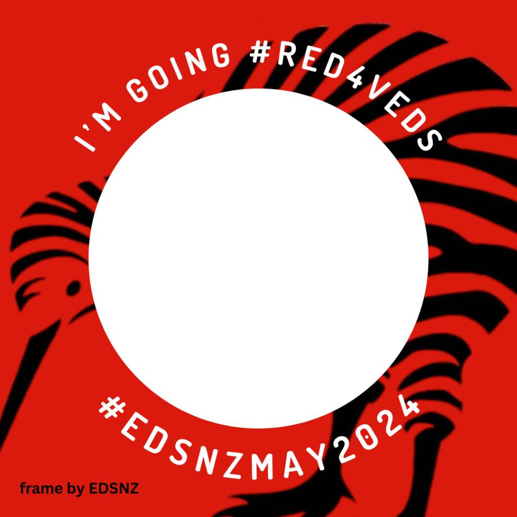 Post a picture of yourself wearing red on May 17th and use the hashtags #edsnzmay2024 and #REDS4VEDS to show your support.